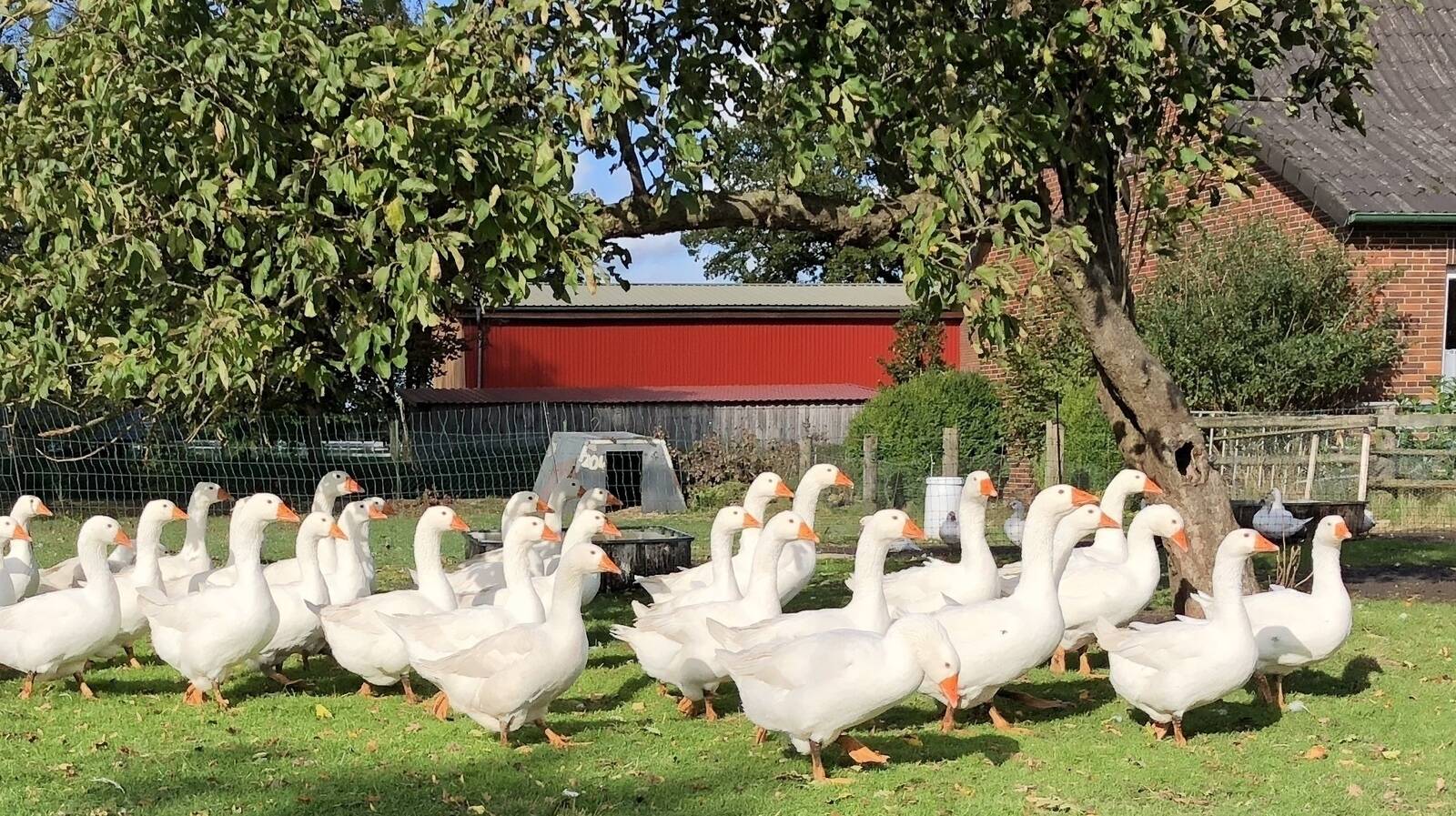 Unser gesamtes Geflügel genießt ein Leben in Freilandhaltung und auch unsere „Strohschweine“ leben im Herdenverband mit viel Platz.